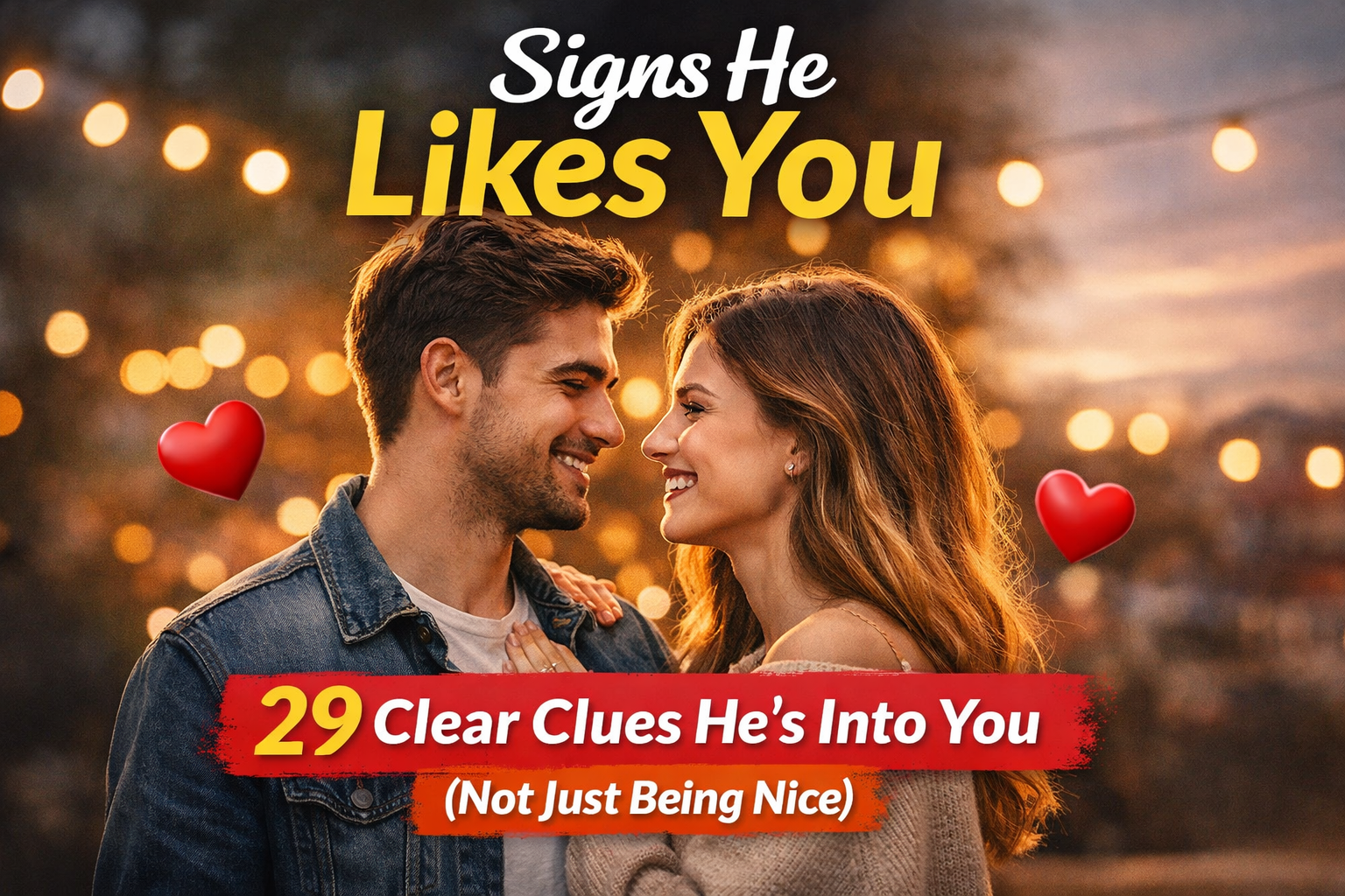 In this guide, you’ll discover 29 real, psychological and behavioral signs he likes you, so you can stop guessing and start knowing.